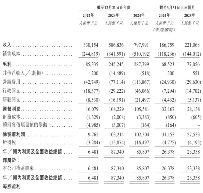 乐摩的财务数据呈现出快速增长的趋势。截至2022年、2023年及2024年12月31日止年度,公司分别录得收入3.30亿元、5.87亿元和7.98亿元。